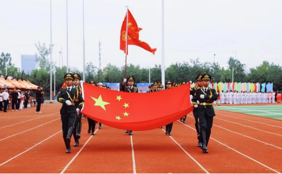 伴随着激昂奋进的《运动会进行曲》,国旗护卫队、仪仗队、彩旗队等方阵队伍迈着铿锵有力的步伐,喊着振奋人心的口号向主席台走来。信息技术学院表演方阵以抗日战争为题材的舞蹈为全校师生带来一场精彩的视觉盛宴,展现信息学子对革命精神与传统文化的领悟。